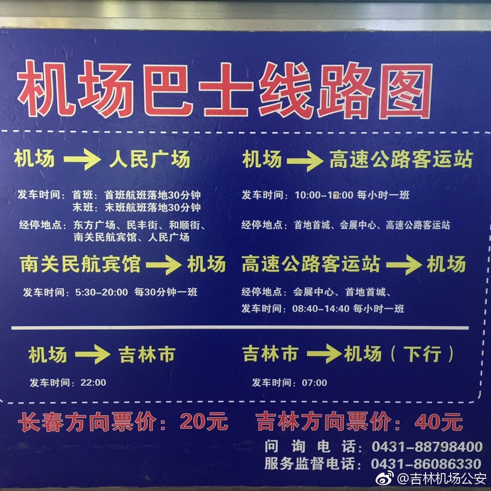 长春龙嘉国际机场大巴时刻表、站点票价以及最新电话信息如下: